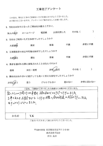 ご紹介で当社にご依頼にいただいたY.K.様からのアンケートです。